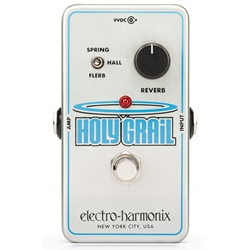 Down from the heavens comes the EHX Holy Grail, a compact digital reverb guitar pedal that is priced so low thou shalt not covet thy neighbor's reverb tank any longer. The Holy Grail will make you a believer with its emulation of classic Spring reverb so faithful that even Dick Dale couldn't tell the difference. Next, get lost in the lush spaciousness of the Hall reverb and ask yourself, how did they fit Notre Dame into such a small package?" Finally, reach enlightenment with the haunting Flerb.