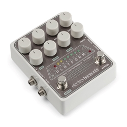 The EHX Platform Stereo Compressor/Limiter presents you with a versatile and powerful studio-quality compressor enclosed in a stompbox-sized package. Use the Platform’s compressor/limiter on any instrument—such as guitar, bass or keyboards—for precise and powerful control of your signal’s volume. Engage the Drive and Swell functions to further tailor and enhance your sound. Whether you’re on stage, in the studio, putting together a podcast or creating your next YouTube masterpiece, the Platform will help you get the job done.