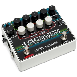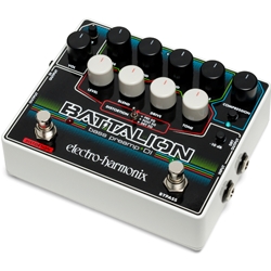 The EHX Battalion Bass Preamp and DI is packed with a four-band equalizer, fully-featured MOSFET distortion section with three signal path options, a compressor, a noise gate and a comprehensive I/O. An all-in-one tone tank for your bass guitar.