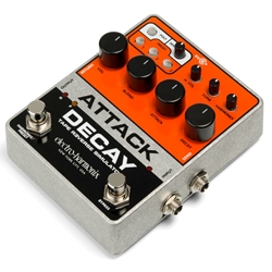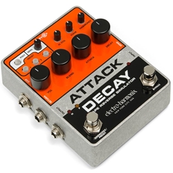 The circa-1980 Electro-Harmonix Attack Decay is a sought after prize among vintage pedal aficionados. Originally called a Tape Reverse Simulator, it’s known for producing volume and reverse swells, backward tape sounds, artificially short staccato notes and bowed instrument effects. The freshly designed EHX Attack Decay reinterprets the classic and keeps its cool factor, but adds some modern features for convenience and enhanced functionality.