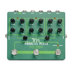 The EHX TriParallel Mixer is a powerful effects creation and mixing hub with three separate FX loops and flexible controls allow for multiple configurations.